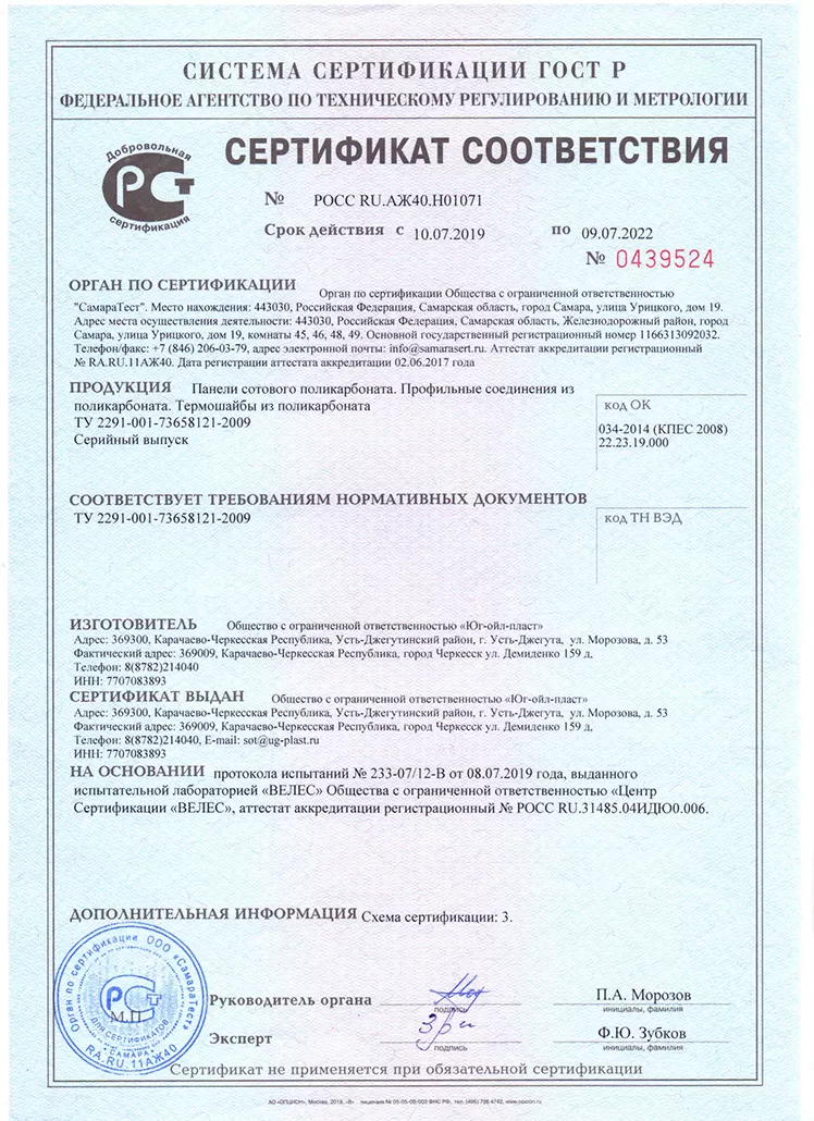 Подтвержденное сертификатами и действующими ГОСТ