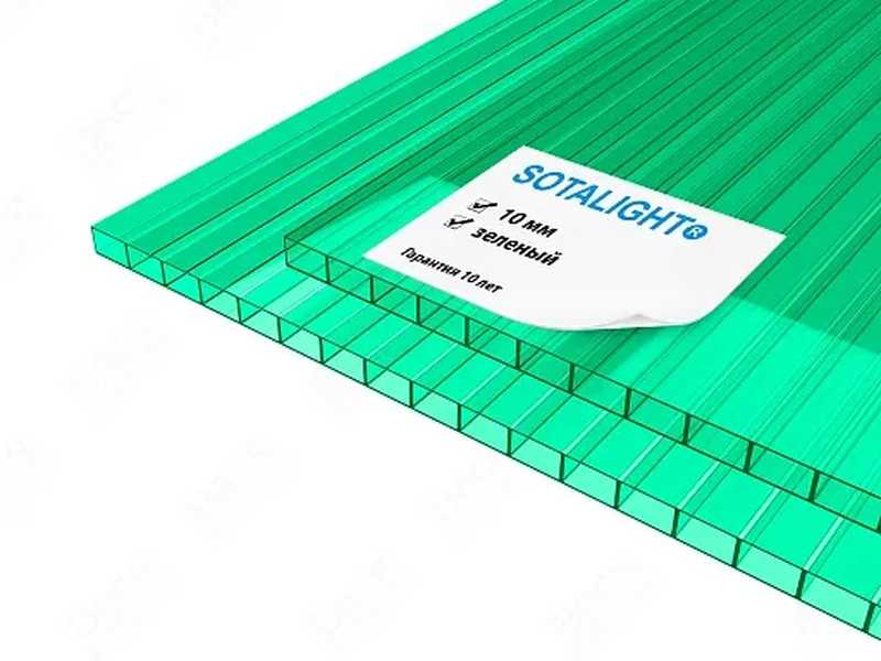 Сотовый поликарбонат 10 мм SOTALIGHT зелёный 2100х12000 мм