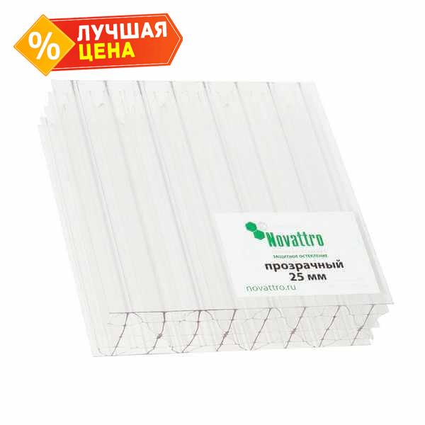 Сотовый поликарбонат 25 мм NOVATTRO прозрачный 2100х6000 мм
