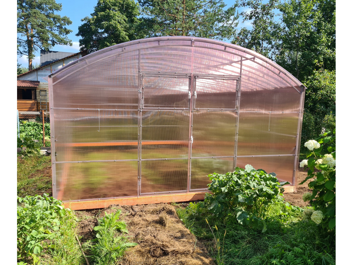 • теплица рекомендована для северных широт с большим количеством осадков, выдерживает порывистые ветра и сильные снегопады, не деформируется под слоем слежавшегося снега толщиной до 90 см;