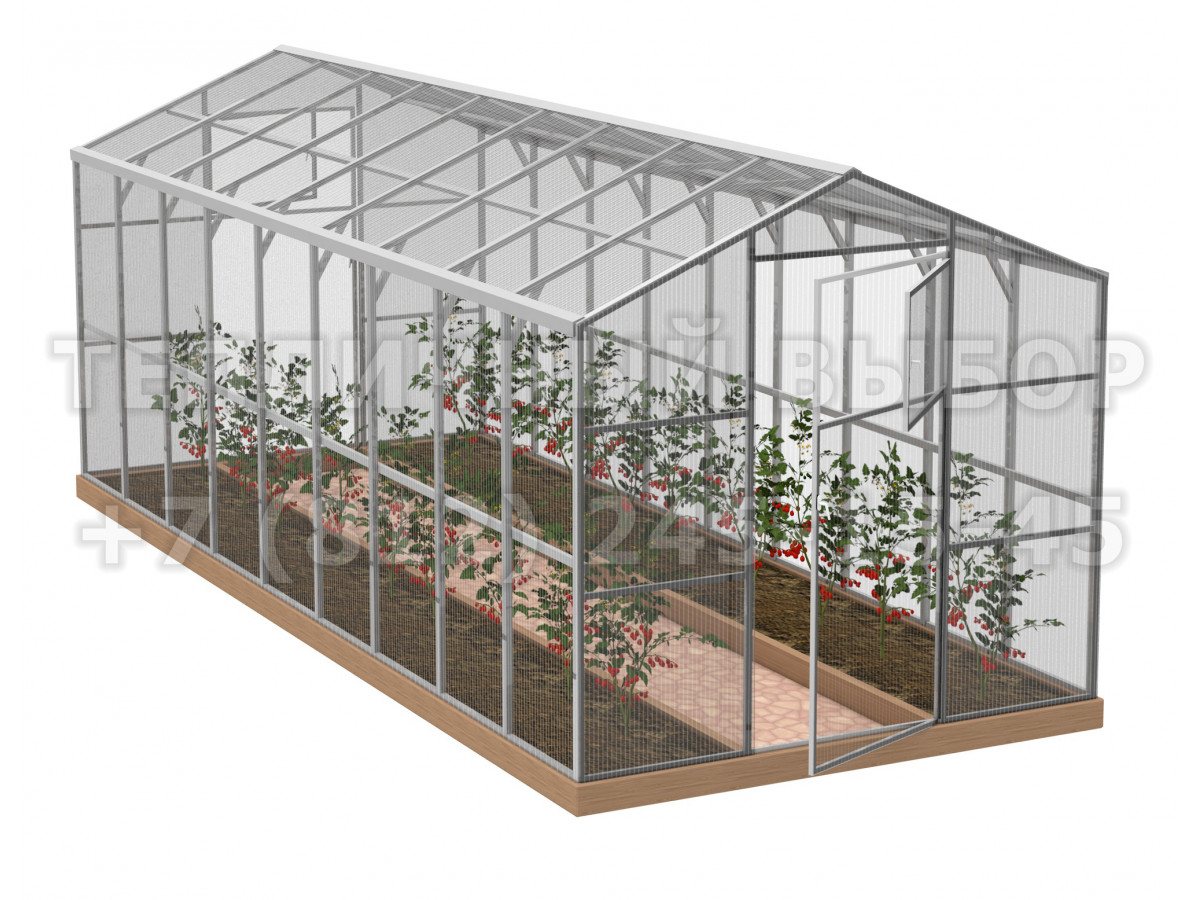 Теплица из поликарбоната Усиленная Домиком 2,3х8 h=2.1 м профиль 25х25 мм