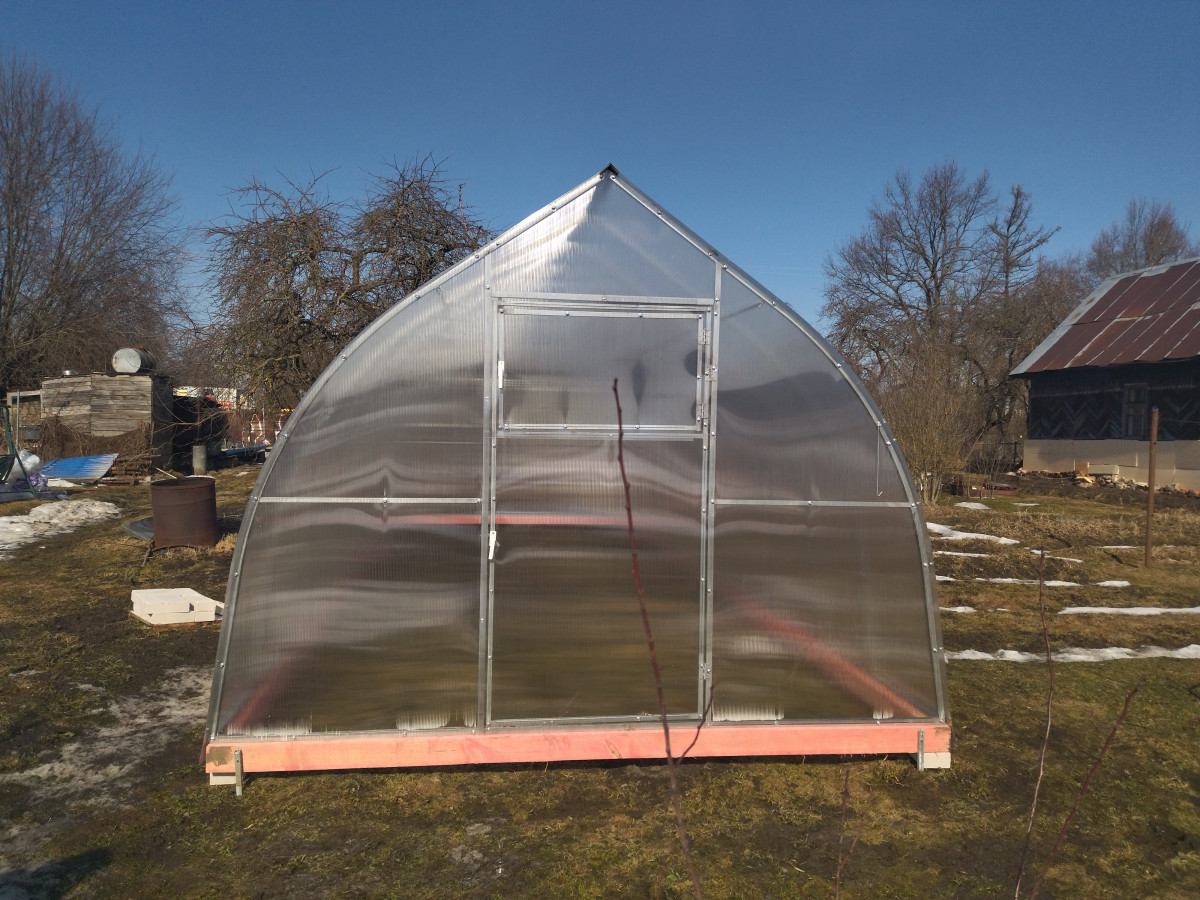 В разобранном виде теплица состоит из отдельных сварных рам в виде дуги.