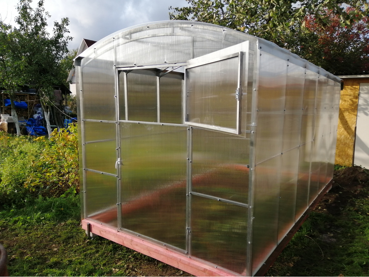 • теплица рекомендована для северных широт с большим количеством осадков, выдерживает порывистые ветра и сильные снегопады, не деформируется под слоем слежавшегося снега толщиной до 90 см;